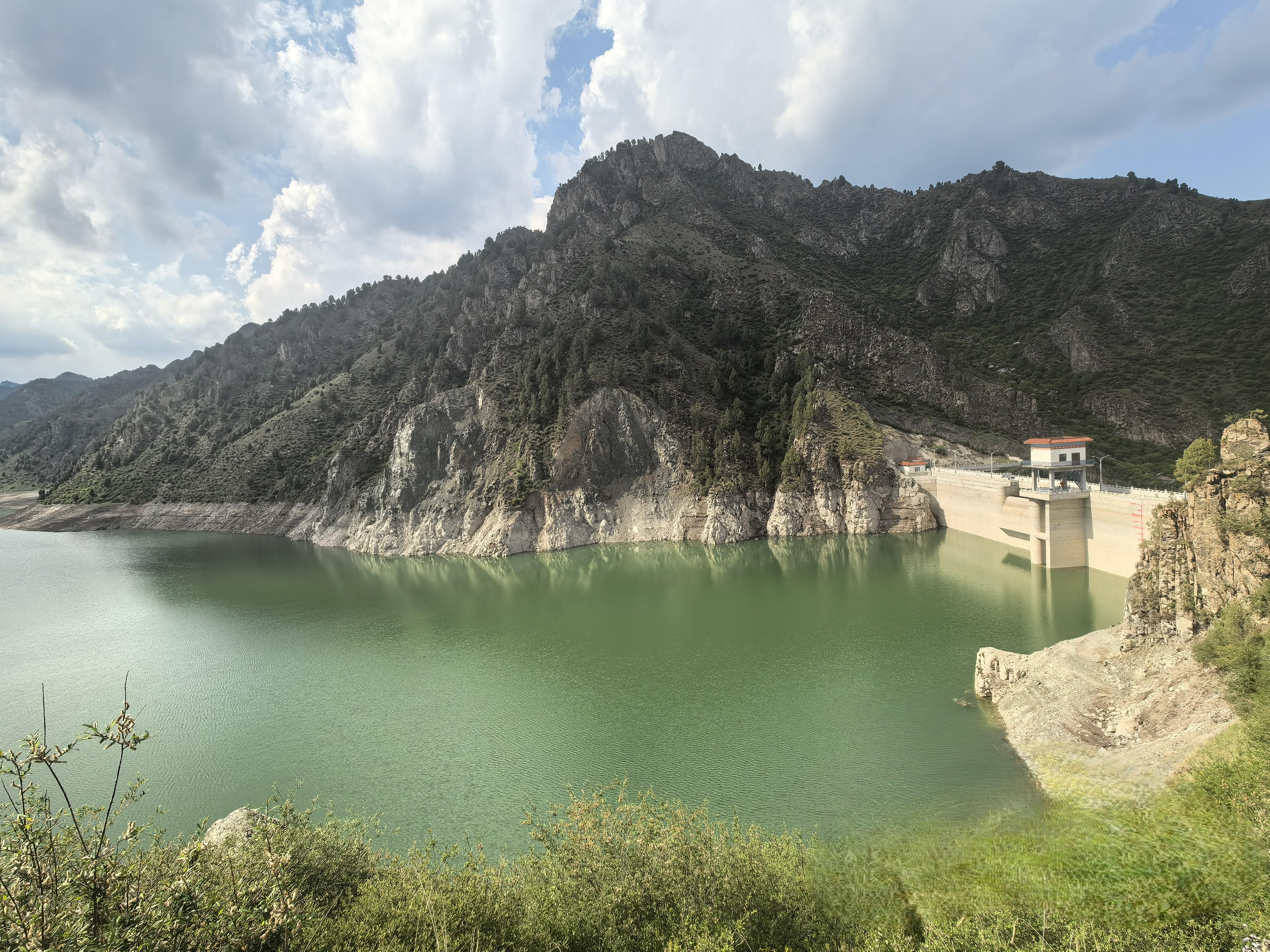 天祝石门沟水库蜿蜒流淌、碧波荡漾。