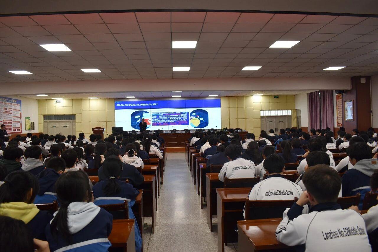 组织民警走进兰州市第五十二中学开展禁毒专题宣传授课,通过宣传展板、现场讲解等形式,面向青少年普及禁毒知识。民警紧密结合青少年认知层次和心理特征,重点围绕传统毒品与新型毒品的区别,详细介绍新型毒品的外观形态、成瘾机理和现实危害,同时深入讲解青少年药物滥用等问题,科普安全用药知识,警示滥用止咳水、镇静催眠药等常见药物的成瘾风险与健康危害,引导青少年提高警惕、明辨是非,自觉远离毒品及药物滥用陷阱,树立健康向上的生活理念。现场宣传展板同步展示禁毒知识要点,民警与学生面对面交流答疑,将防毒拒毒、安全用药知识送到青少年身边,切实提升了学生自我保护意识和防范能力。